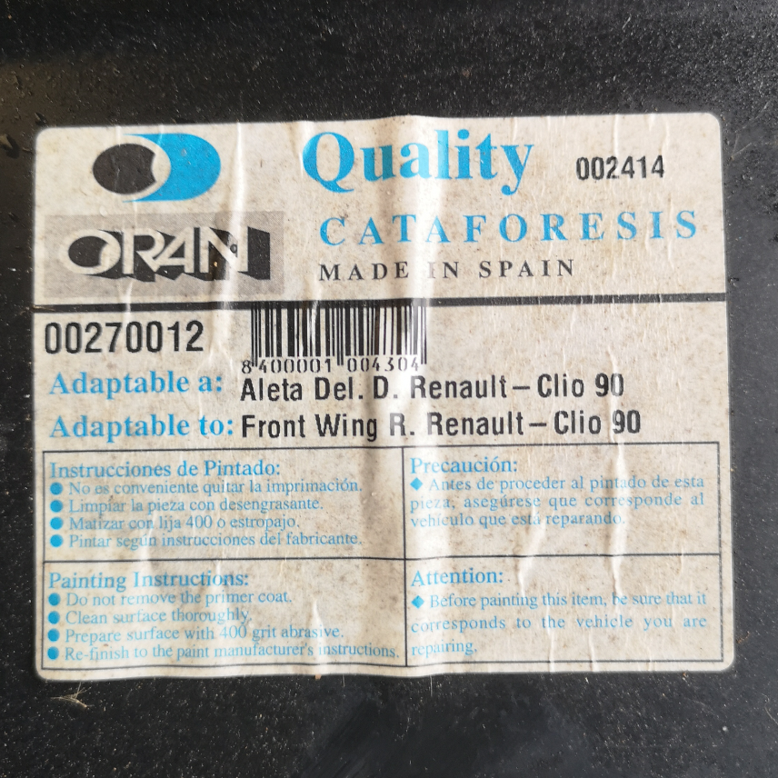 Description : Aile avant droite de Clio.