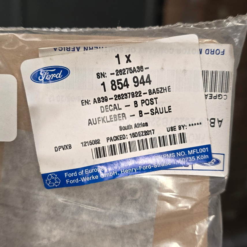 1854944 autocollant Ford Ranger pilier B droit
